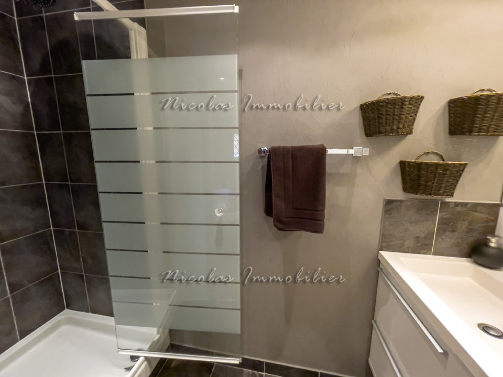 Douche, lavabo, sèche-serviette