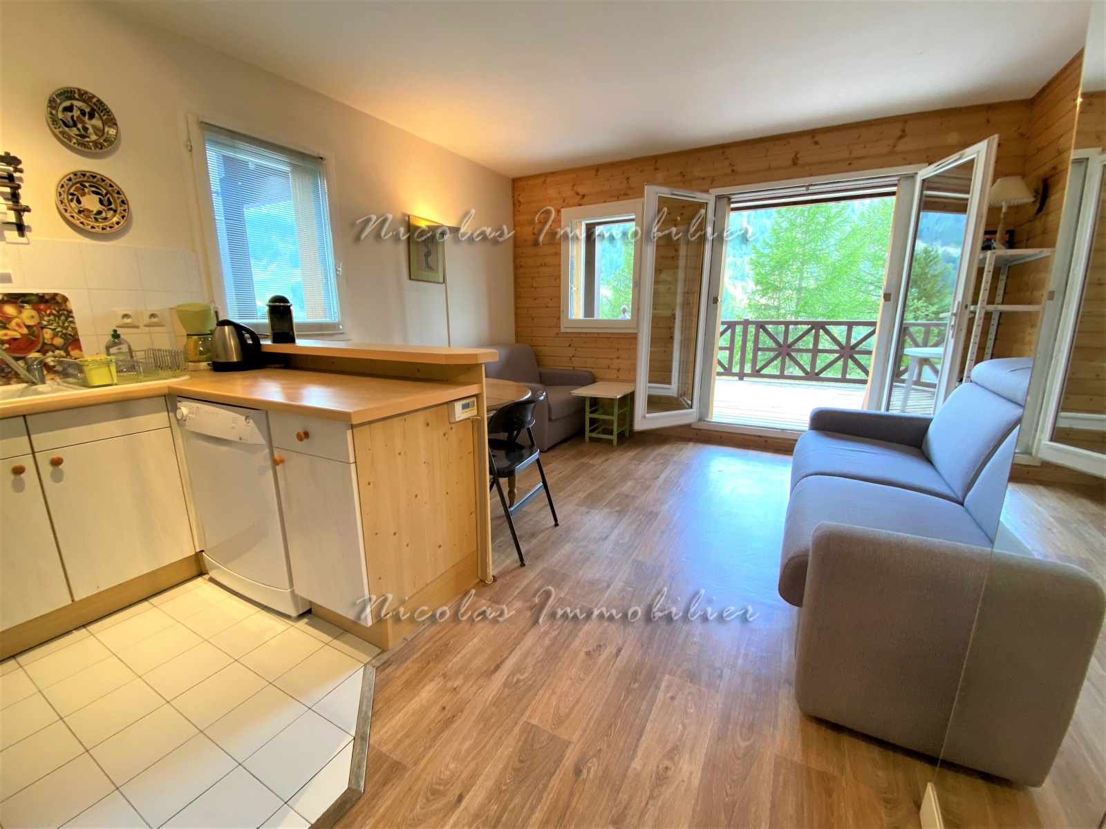Situé dans un chalet, Studio 29 m² composé de : Entrée avec coin montagne, salle de bains, WC séparé, Cuisine américaine, 1 canapé lit type Rapido, 1 fauteuil lit, TV, Terrasse 15 m², Orientation Sud/Ouest. Casier à skis. LOYER : 4.000 € + EDF - Location saison entière